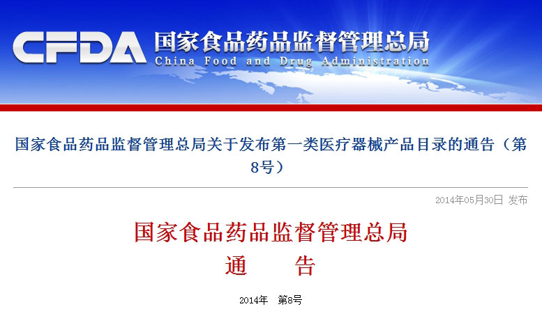關(guān)于發(fā)布第一類醫(yī)療器械產(chǎn)品目錄的通告