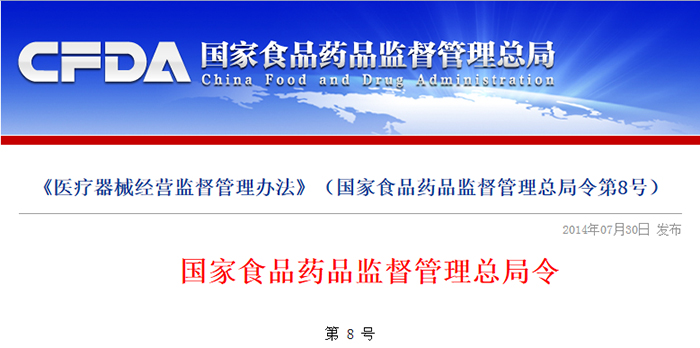 《醫(yī)療器械經(jīng)營監(jiān)督管理辦法》已于2014年6月27日經(jīng)國家食品藥品監(jiān)督管理總局局務(wù)會議審議通過,現(xiàn)予公布,自2014年10月1日起施行。